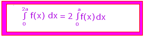 Intlimits_-aa fxdx2intlimits_0a fxdx if f-xfx and intlimits_-aa fxdx0 if f-x -fx Using third property of definite integrals we have intlimits_ab fxdxintlimits_ac fxdx intlimits_cb fxdx.
